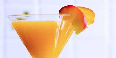- A pezsgőspohár aljára 1/3 részben tegyél barackpürét, vagy a leturmixolt barackot.