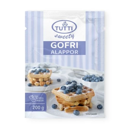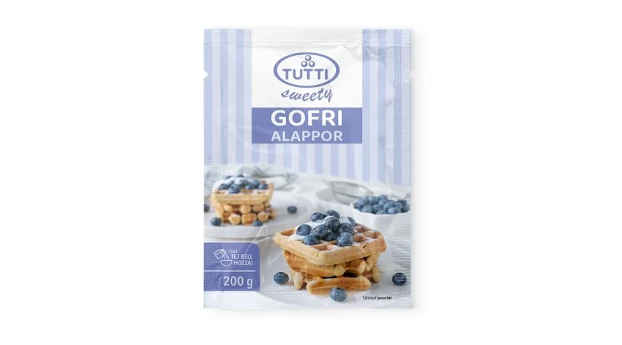 200 g Tutti gofri alappor, melyből 200 ml (1,5 %-os zsírtartalmú) tej hozzáadásával 6-8 adag készíthető.